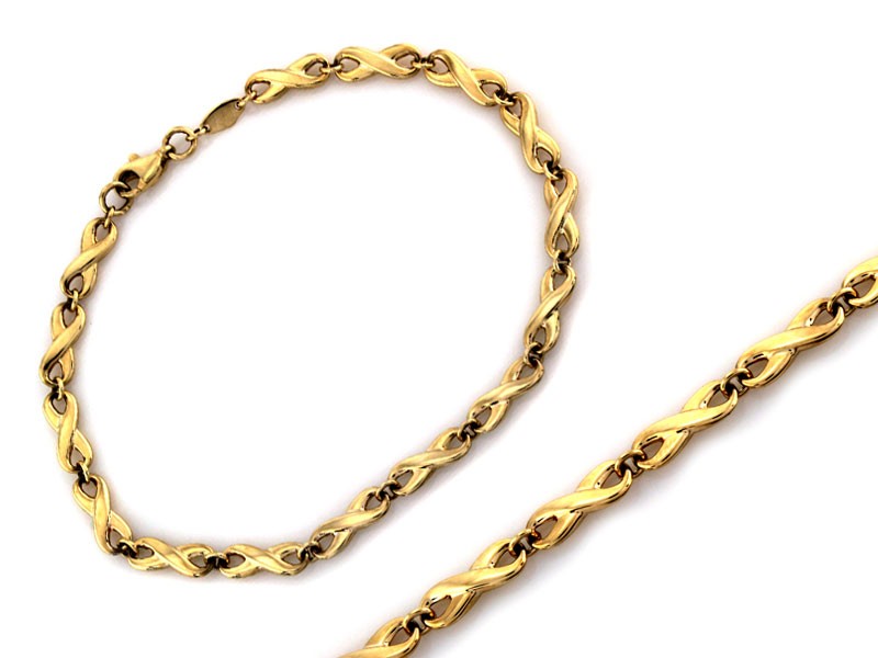 Złota bransoletka z ogniw w kształcie nieskończoności – próba 375, waga 2,72g, 19cm