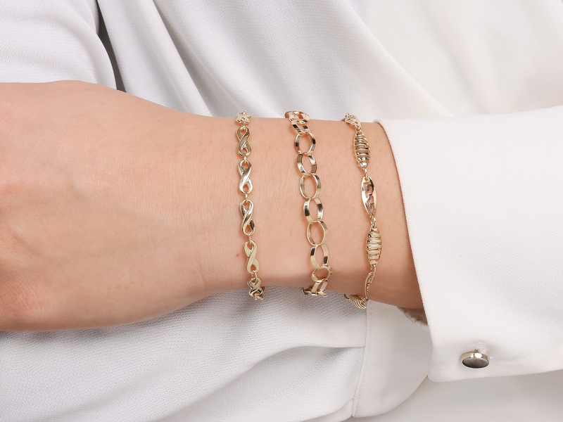Złota bransoletka z ogniw w kształcie nieskończoności to połączenie elegancji, symboliki i ponadczasowego stylu, które czyni ją wyjątkowym elementem każdej kolekcji biżuterii.