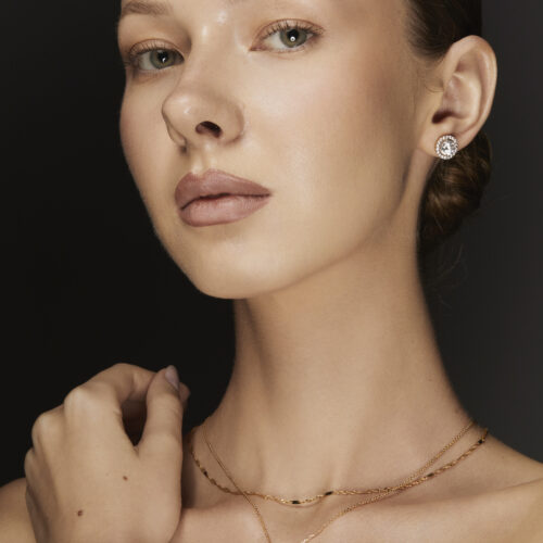 Prostokątna cyrkonia w kolorze zielonym sprawia, że kolczyki nabierają eleganckiego wyrazu.