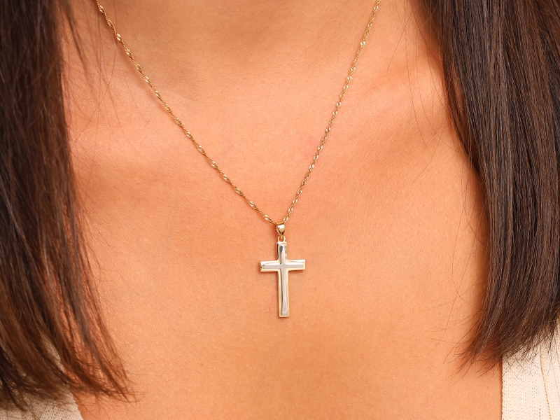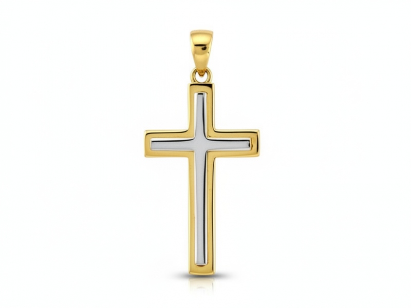 Dwukolorowy złoty krzyżyk to połączenie tradycji i nowoczesnej elegancji, które sprawia, że biżuteria ta doskonale uzupełni każdą stylizację i będzie towarzyszyć przez długie lata.